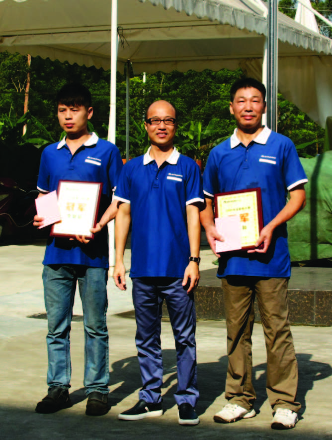 当晚,台球比赛决还出了前三名,分别为电焊车间的李聪聪、技术部的吴海明、营销中心的黄辉琳,三位对选手间进行单遁环比赛,选出进入决赛选手,5月10日晚上,李聪聪与吴海明在桌球台上进行了激烈的对抗,最后李聪聪凭借其在桌球台上的冷静和高超的技术,获得了本次台球比赛的冠军,吴海明获得了亚军,黄辉琳获得了季军。在升旗仪式活动上,公司总裁孙建云、市场中心总经理刘生伍、技术中心总经理黄敏棣、制造中心总经理罗华分别为各项的获奖选手颁发了奖金与奖牌。