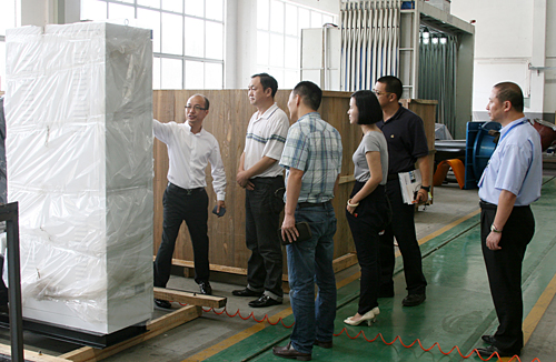 2012年9月24日,浙江省温州市经信委领导一行莅临我公司考察。公司董事长兼总裁孙建云、副总经理徐幸福热情接待了各位领导。座谈会上孙总重点介绍了公司的发展历程、业绩荣誉和未来规划,陪同经信委领导一行参观了九龙制造厂生产车间,并就公司设备性能、产品工艺和主要用途作了概要的讲述。经信委领导对公司多年来所取得的成绩和务实进取的精神表示肯定,鼓励企业再接再厉再创佳绩,继续发挥温州在粤企业的表率作用。