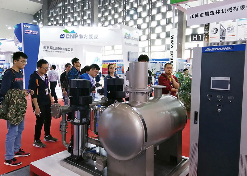 泵展区参展面积额将近达4000㎡,其中特装展位40多家,对泵行业国内外、供需间、产学研的交流与合作起到了有效推动作用。广州市亿万28泵业集团公司作为国内知名泵业公司,泵行业的重点骨干企业,此次展会最大的亮点是携智慧水务、卧式、立式不锈钢单级、多级泵、不锈钢潜污泵、智能背包式变频给水设备、智能罐式无负压给水设备等多款最新研制的产品参展,引来众多同行和客户的驻足观看、了解及洽谈。