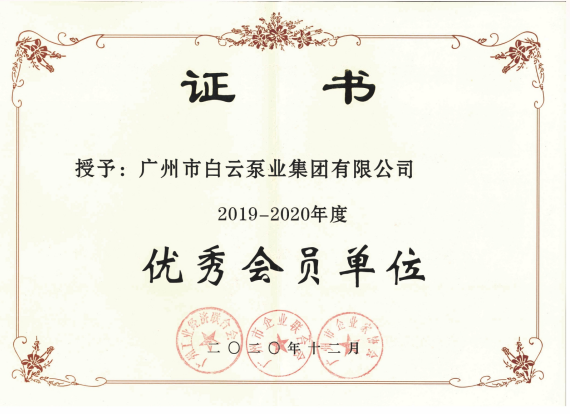 亿万28泵业集团荣获广州三会“2019-2020年度优秀会员单位:
