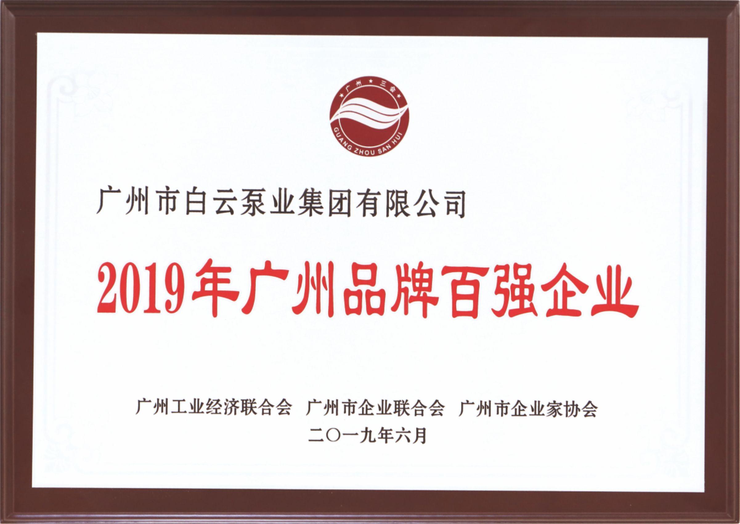 亿万28泵业集团荣获“2019年广州品牌百强”及“2019年广州创新百强”双百强称号