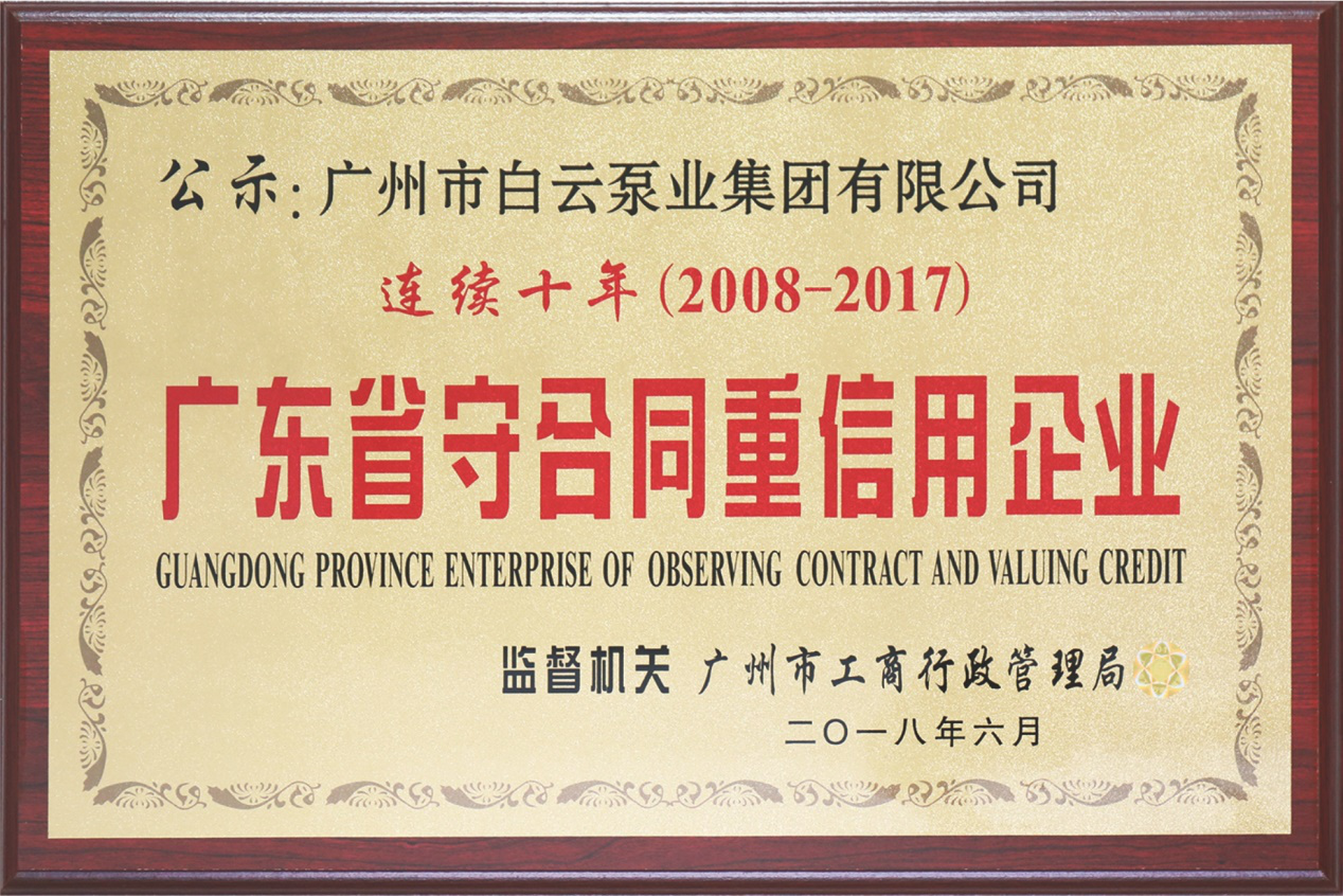 2018年6月,经广东省工商行政管理局审核批准,亿万28泵业集团公司再次获得“广东省守合同重信用企业”荣誉证书。这是公司连续十年(2008年-2017年)获得该荣誉。